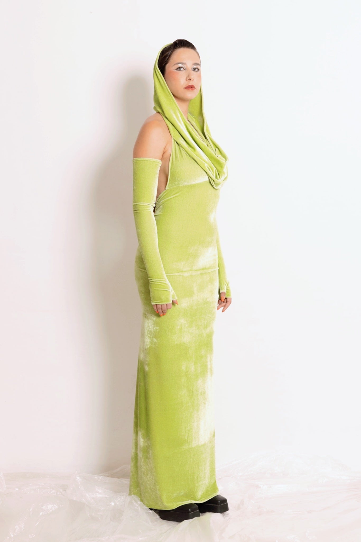 COWL DRESS CHARTREUSE