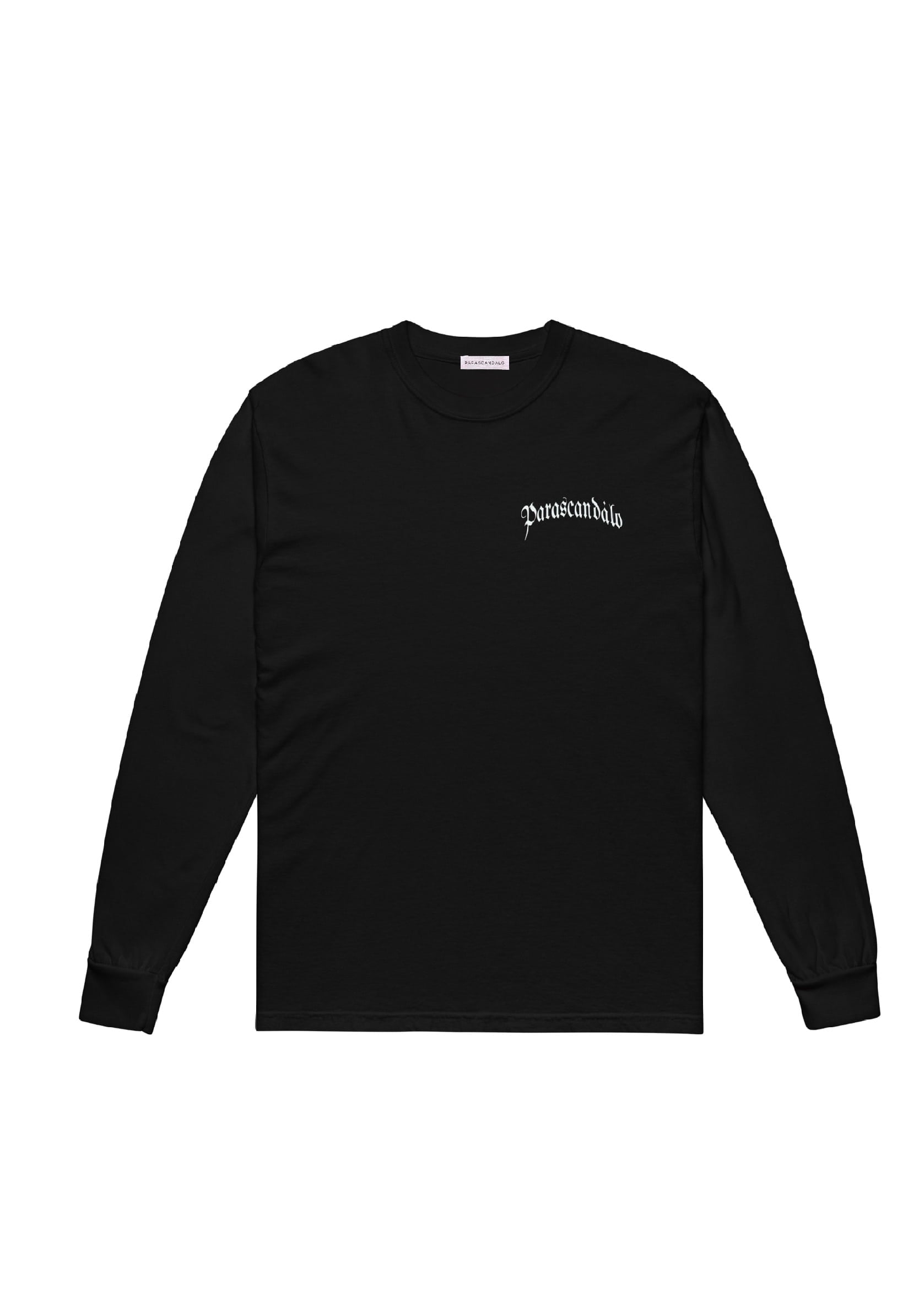 PARASCANDALO arc script logo on long sleeve t-shirt with ribbed cuffs and neckline