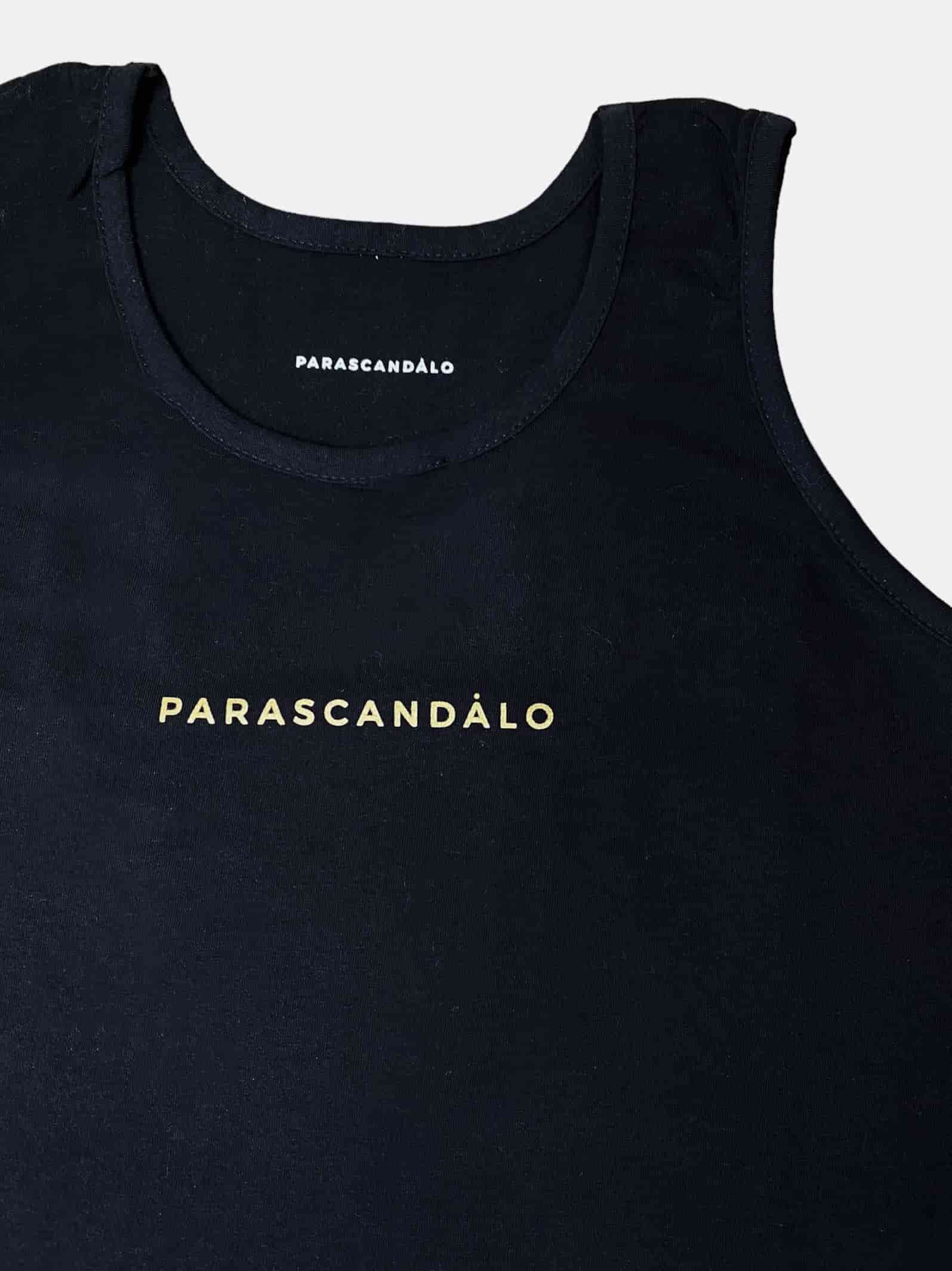 Classic PARASCANDALO logo printed in gold on 100% cotton sleeveless tank top Wash cold and with similar colours